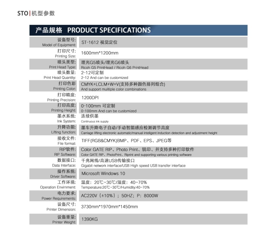 經典款理光G5配置:草稿模式 4PASS:24㎡/h 生產模式6PASS:15㎡/h 高精模式 8PASS:12㎡/h